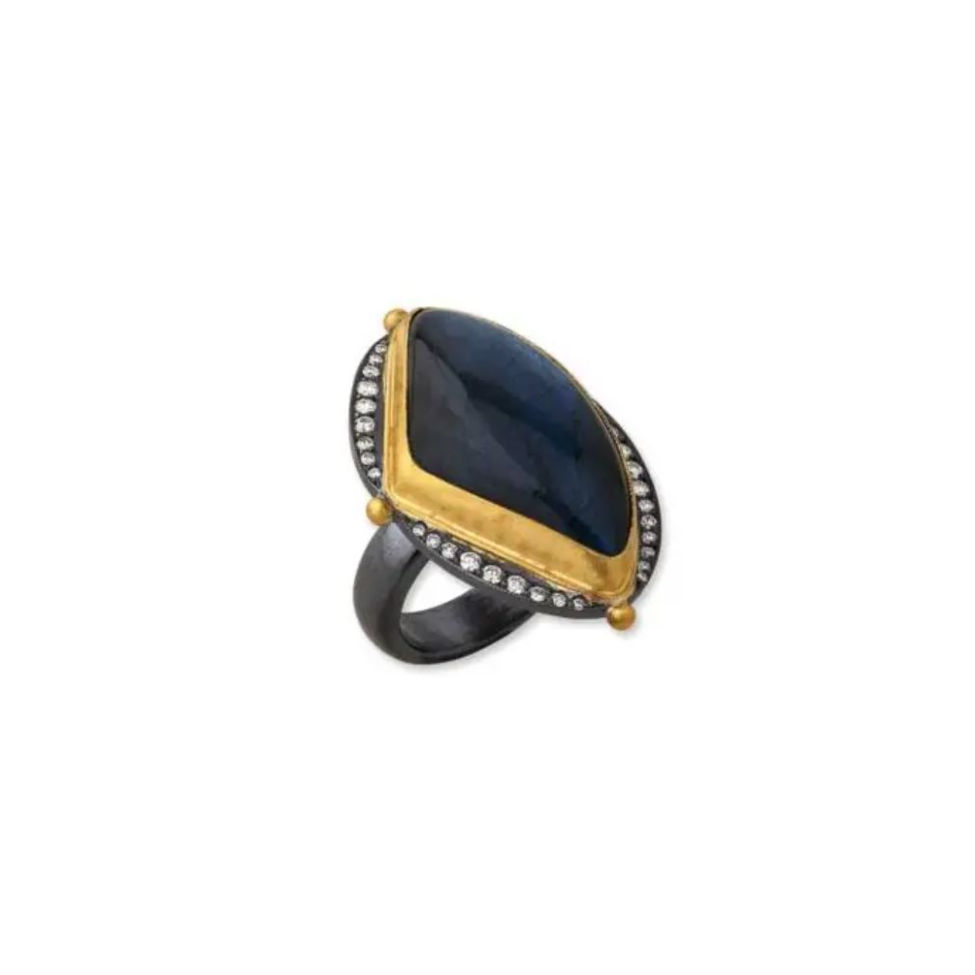 24K & OXIDIZED SILVER “OLYA” NORTH SOUTH CABOCHON LABRADORITE RING, DIAMONDS .53TW, 17X30mm labradorite