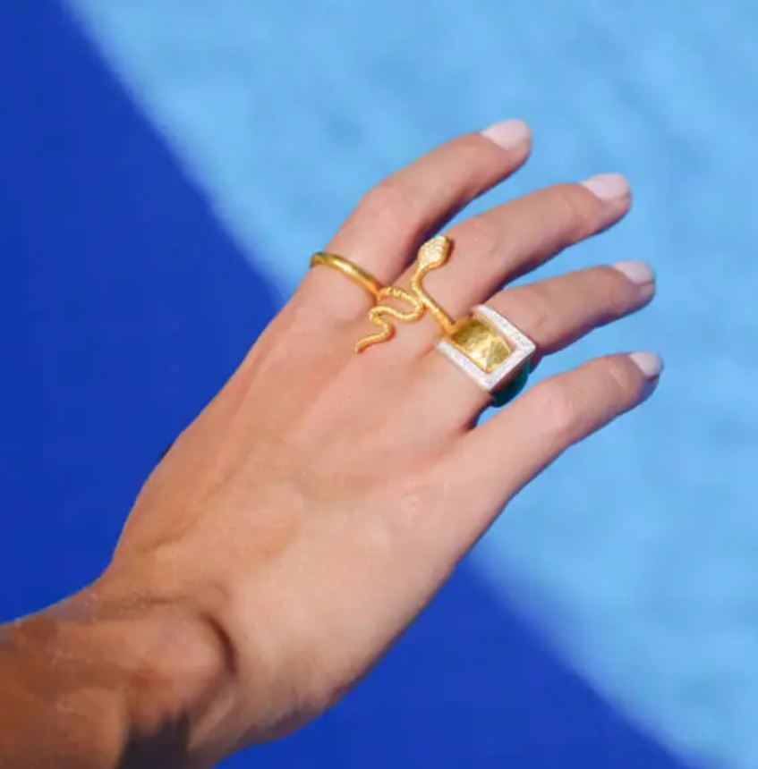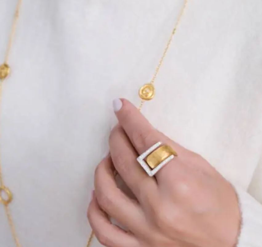 24K GOLD & STERLING SILVER “DECO” RING WITH ROUND & SQUARE STEP CUT DIAMONDS, .22CTW, APPROX. 15MM WIDE