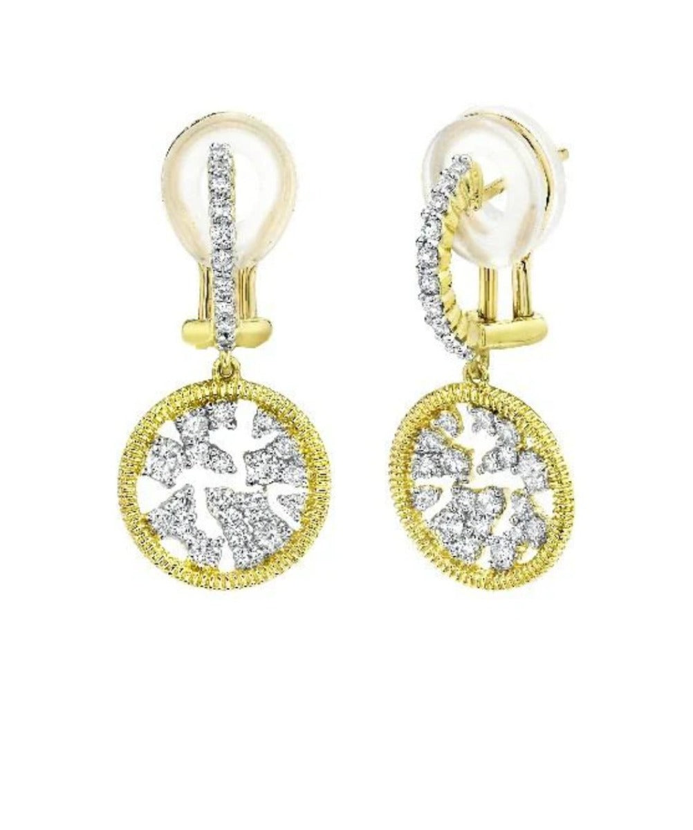 18KY Mix Shapes White Topaz And Diamond Drop Earrings